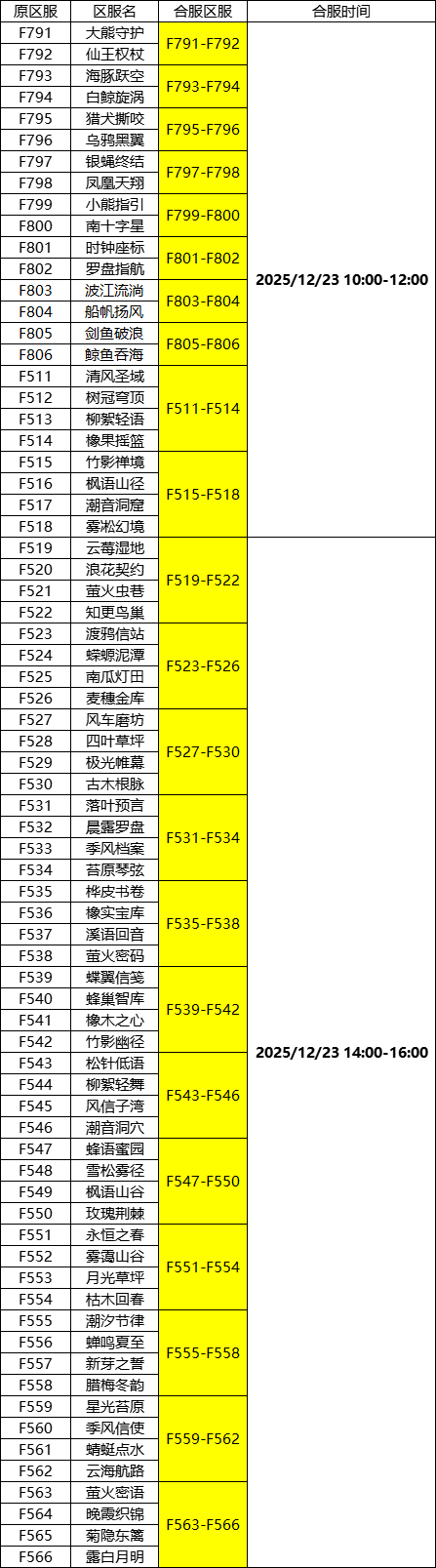 将于2025年12月23日 10:00-12:00合服!
