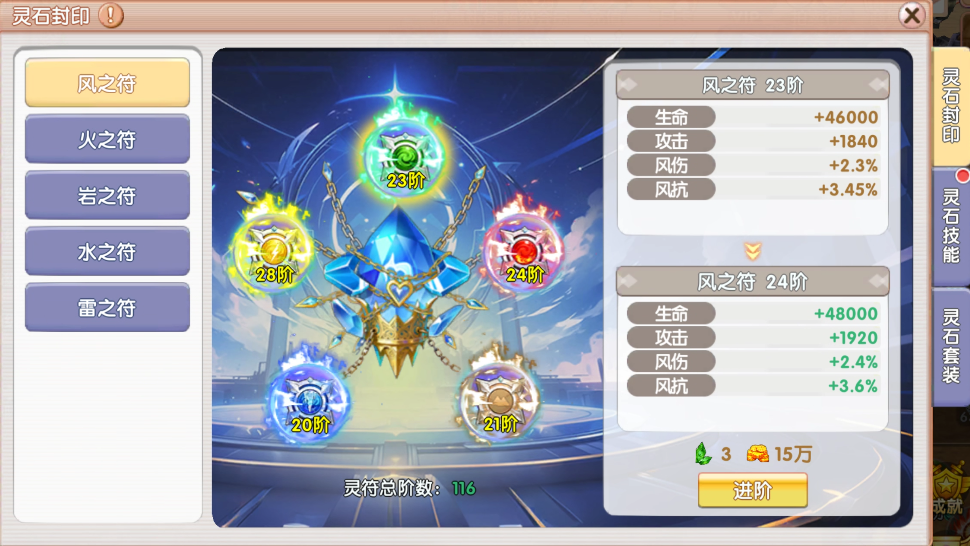 3. 新增成长“灵石封印”,跟随“混沌秘境”玩法开放。玩家可通过“混沌秘境”获得强化道具产出;