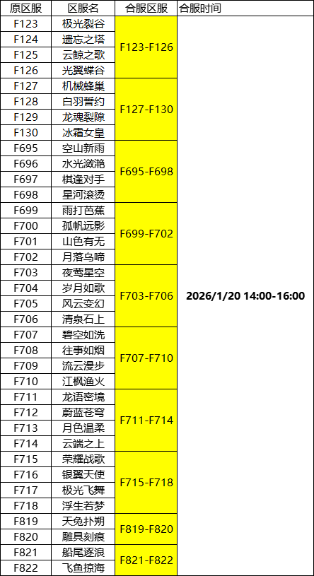游戏将于以下时间对部分区服进行停机合服操作,开服时间会根据实际情况提前或延迟,请相互转告!