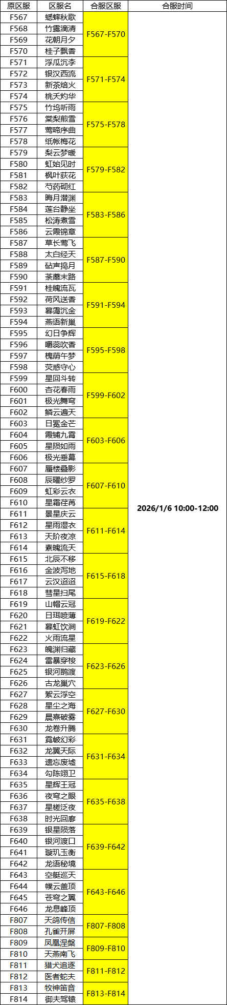 将于2026年1月6日 10:00-14:00合服!