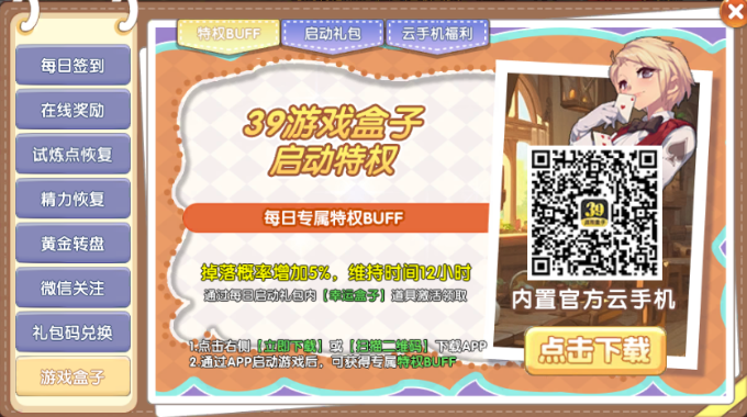 多重好礼领不停,启动即送!使用【39游戏盒子】启动游戏,登陆游戏对应角色,相应启动礼包将通过游戏内邮件自动发送。